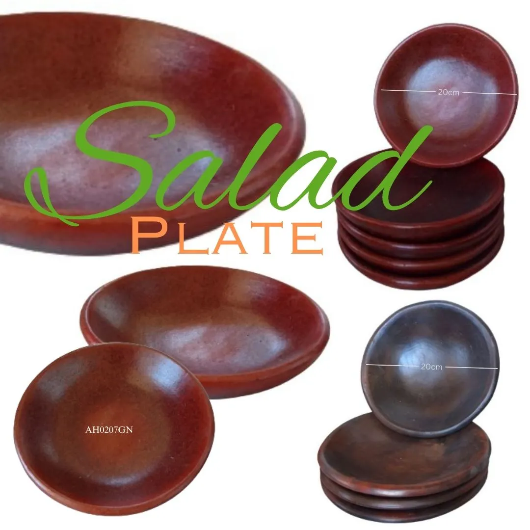 Choosing the right plate and color of your plates set the mood and theme of the table setting. They may affect the dinner's appetite. Salad Plate has 2 color choices, black and red. The black color is produced from sawn wood firing and the red one is from a processed tamarind fruit.