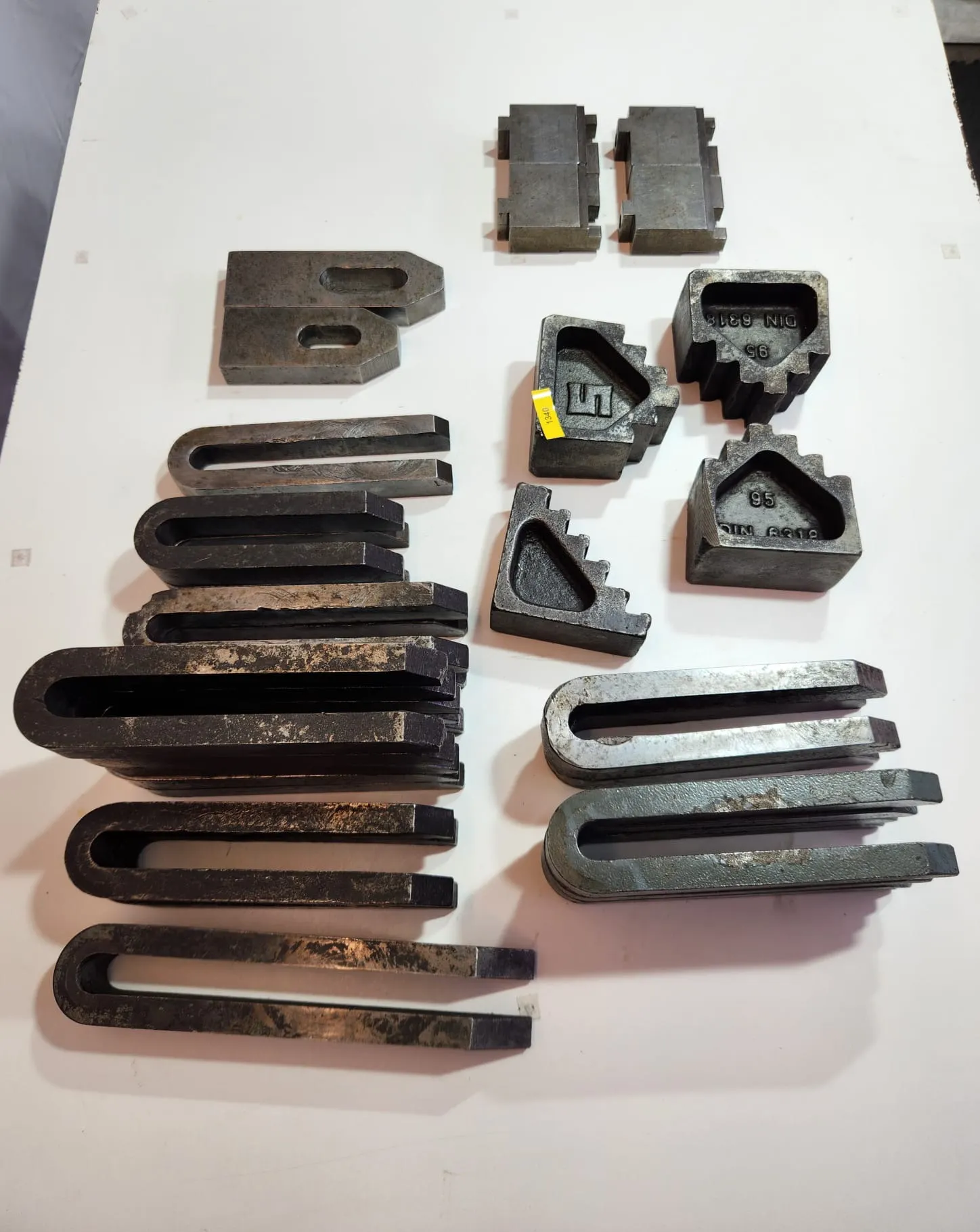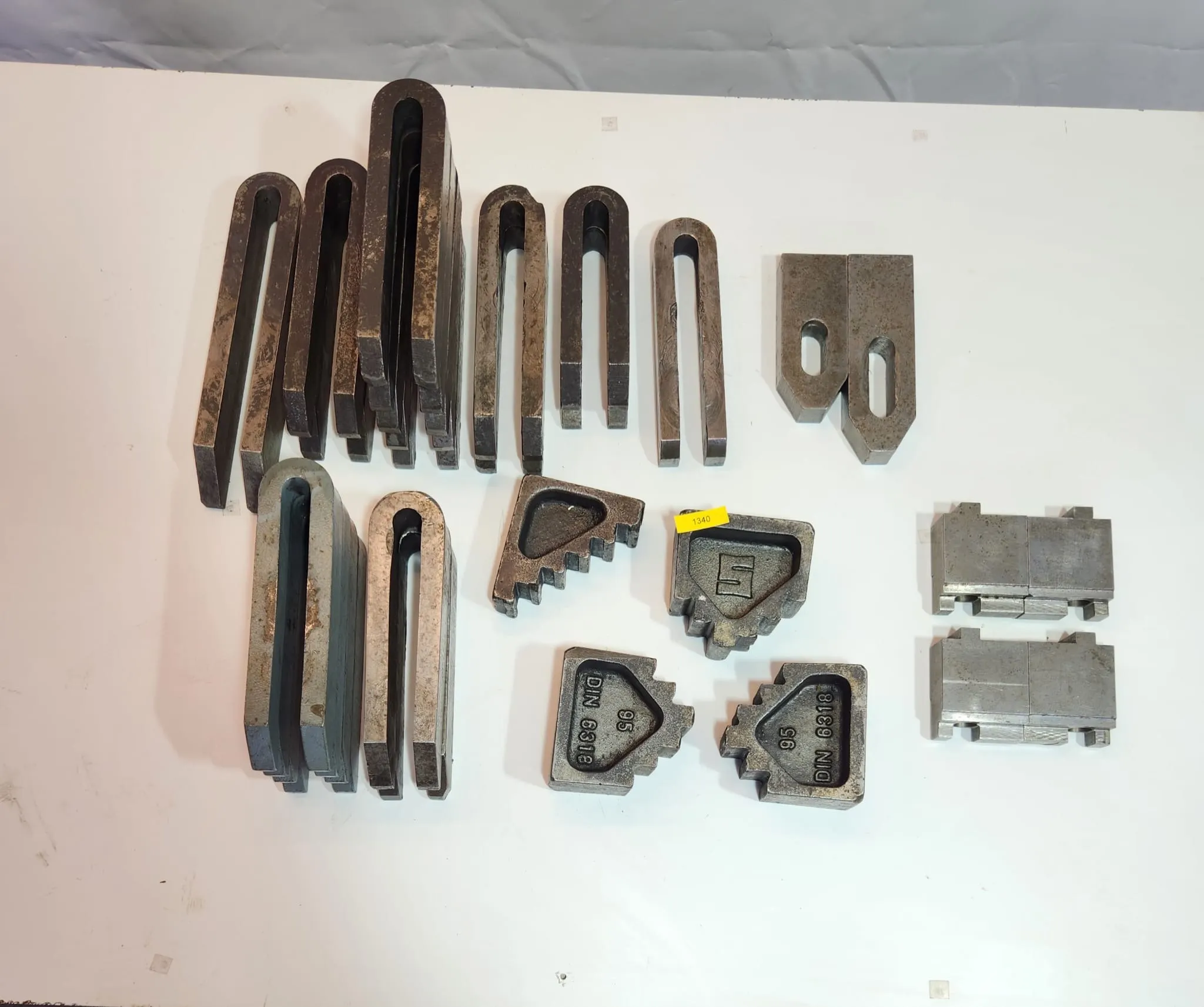Zum Verkauf stehen 14 Gabel-Spanneisen, 2 Spanneisen und 4 Auflageböcke. Insgesamt kosten sie 135€.
