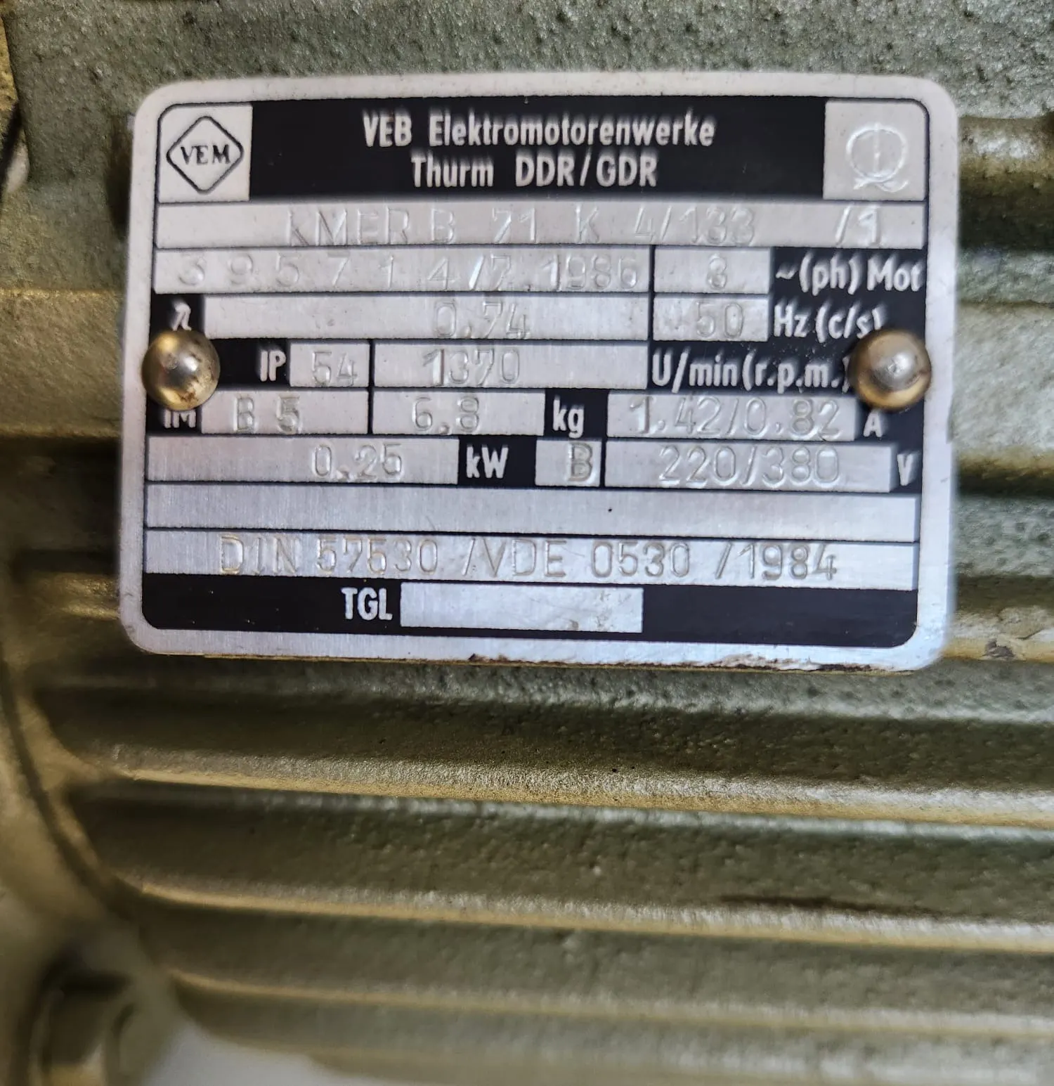 Es wird ein VEB Elektromotor 0,25kw - Elektromotorenwerk Thurm DDR/GDR verkauft.
