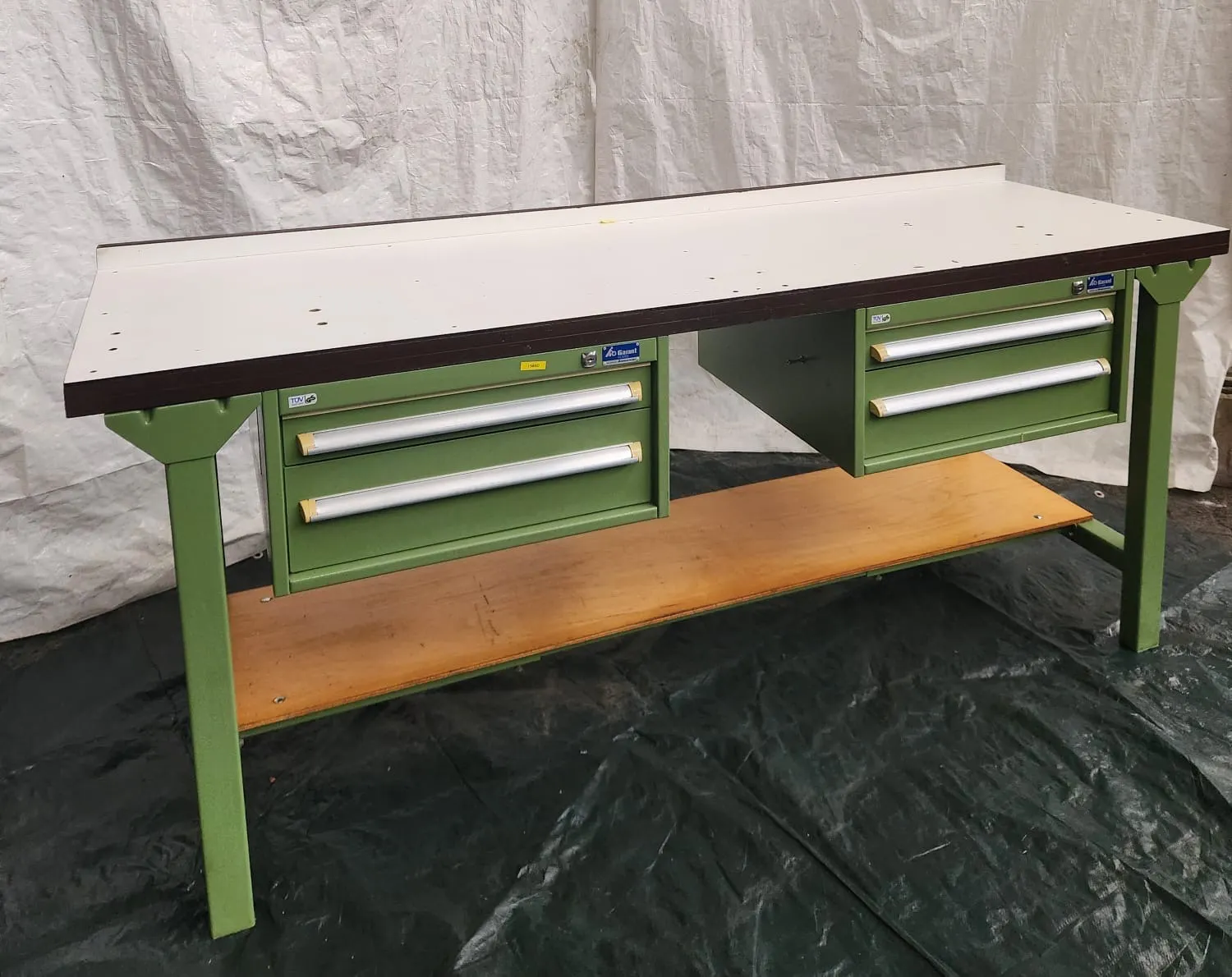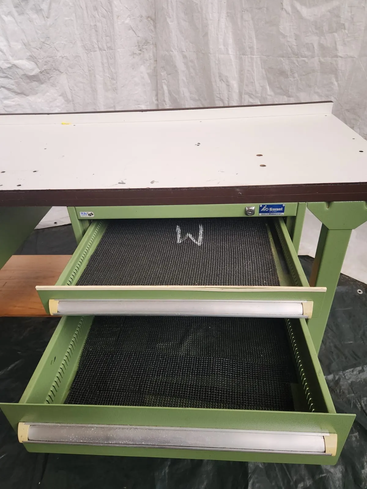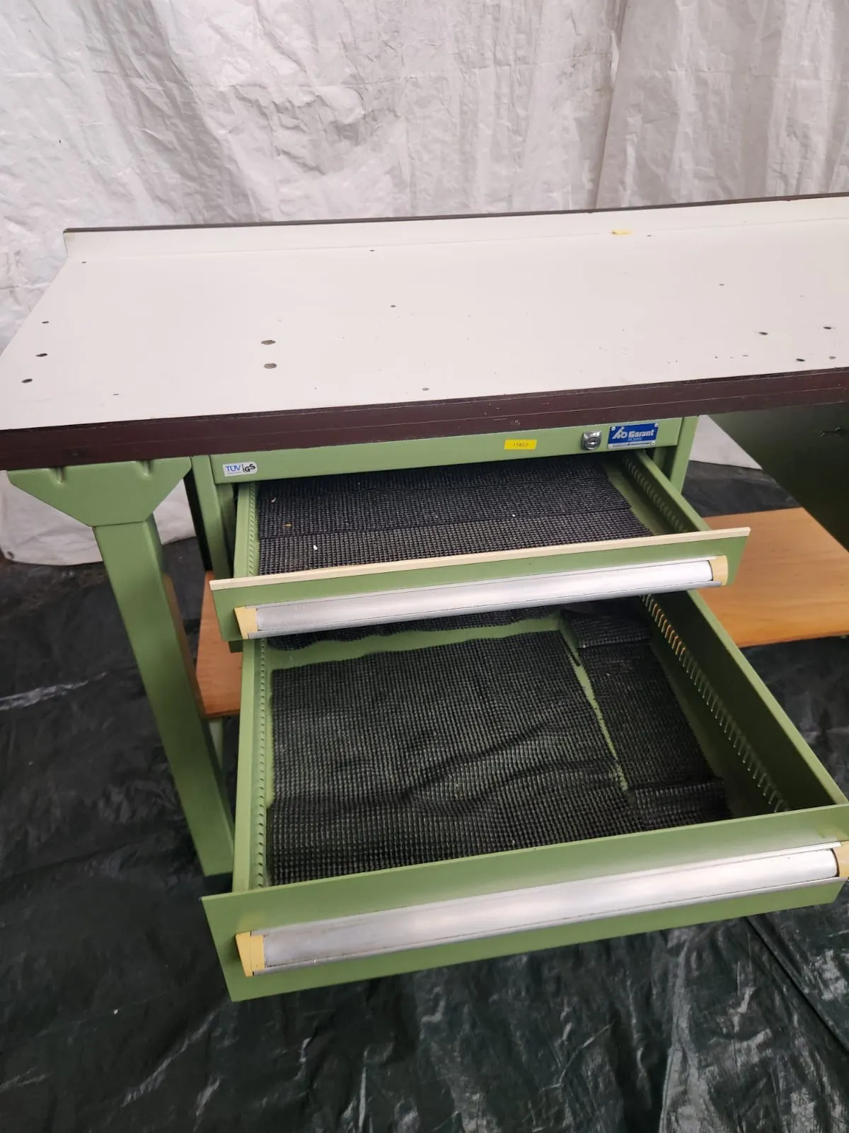 Zum Verkauf steht ein Werkbank mit vier Schubladen.