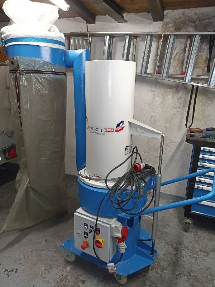 Der STYRO-CUT 350 ist ein kompakter Styropor-Shredder bzw. EPS-Granulator zur Zerkleinerung und Granulierung von Styropor (EPS). Verpackungsreste und EPS-Abschnitte werden in den Einwurftrichter gegeben und automatisch eingesogen. Das Material wird in einem Arbeitsgang zerkleinert und granuliert und anschließend in Säcke abgefüllt oder zum Silo transportiert.