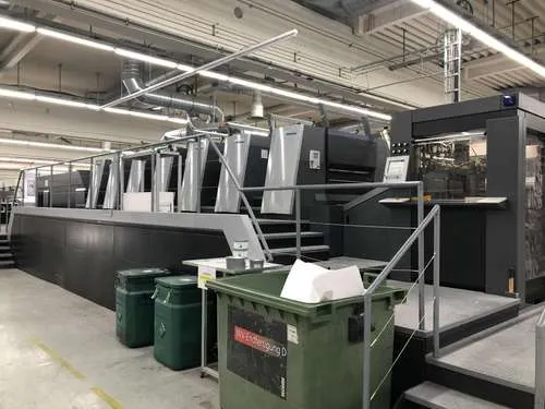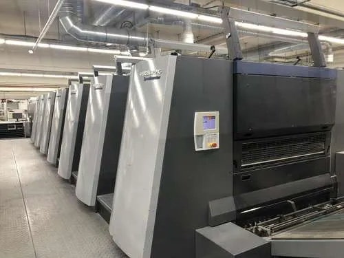 Ausstattung: - Non-stop Ausleger Lackiereinheit mit Kammerrakelsystem Druckzylinderwascheinrichtung - automatisch Farbwalzenwascheinrichtung - automatisch Gummituchwascheinrichtung - automatisch Non-stop Anleger Auslageverlängerung X3Heidelberg Logistics Preset Plus Anleger Preset Plus Ausleger AutoPlate Advanced Rasterwalzenwechsler Multi Loader Model 18000 Sh/hPrinect Inpress Control Prinect Press Center StaticStar - Antistatikausrüstung CoatingStar - Lackversorgung CombiStar - Feuchtmittelaufbereitung + Farbwerktemperierung FilterStar - Zweistufiges Filtersystem AirStar Pro - Zentraler Luftversorgungsschrank ScrollStar - Druckluftversorgung CleanStar - Puderabsaugung DryStar Combination - IR + Heißlufttrockner + UVZwischentrocknerpositionen 1-6InsertStar - Streifeneinlegesystem PowderStar - Pudergerät