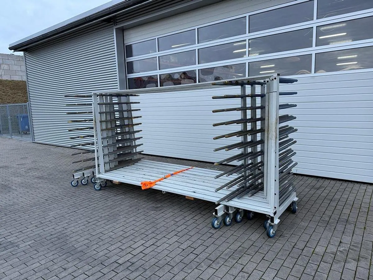 Stabile Lübbers Lacktrockenwagen mit verstellbarem Mittelrechen.