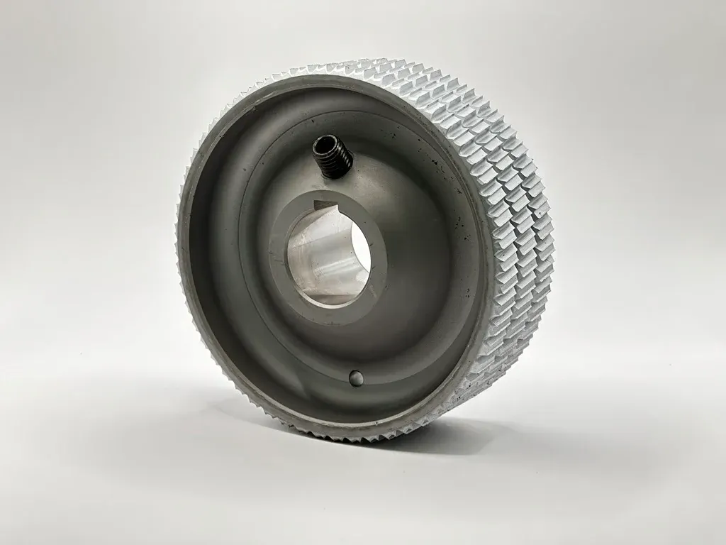 Original Weinig Stahl-Vorschubrolle beziehungsweise Transportwalze zum Einsatz in Weinig Hobel- und Kehlautomaten, Vierseitenhobelmaschinen oder ähnlichen Maschinen. Die Rolle kann für trockene Weich- und Harthölzer eingesetzt werden, um das Werkstück zuverlässig durch die Maschine zu ziehen.