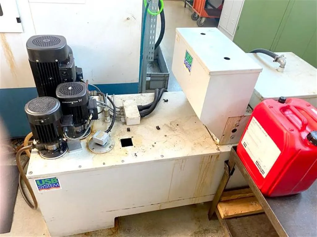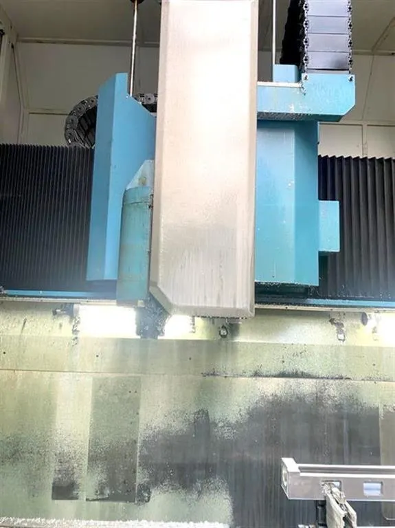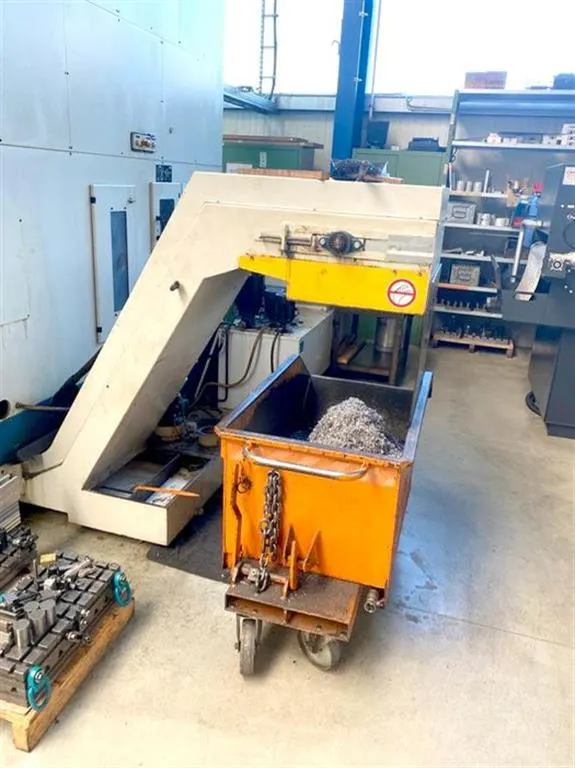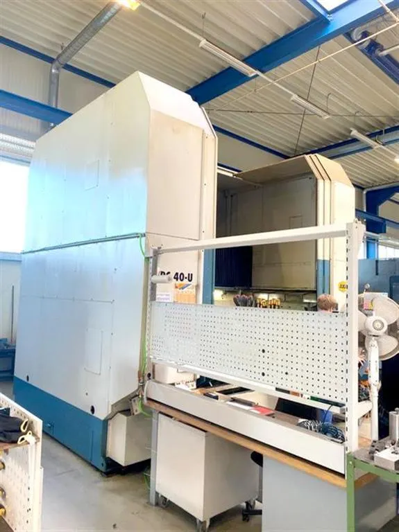 Zusätzliche Informationen: Universalbearbeitungszentrum mit indexierendem Kopf (2,5°), NC-Rundtisch, max. Tischbelastung 1.500kg, Tischerhöhung 150mm, IKZ 30 bar, Bandfilter, el. Handrad, Späneförderer, autom. Schiebetüren, Spülpistole, kein Messtaster ca. 81.400 h Hauptschalter EIN ca. 72.200 h Steuerung EIN ca. 26.700 h Programmlauf EIN Maschine unter Strom , vorführbereit