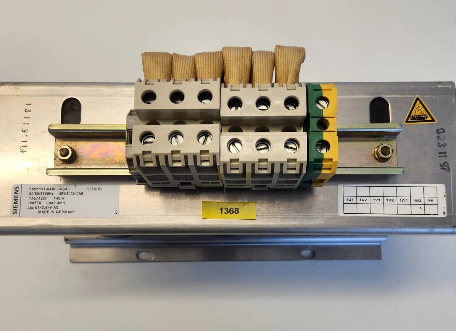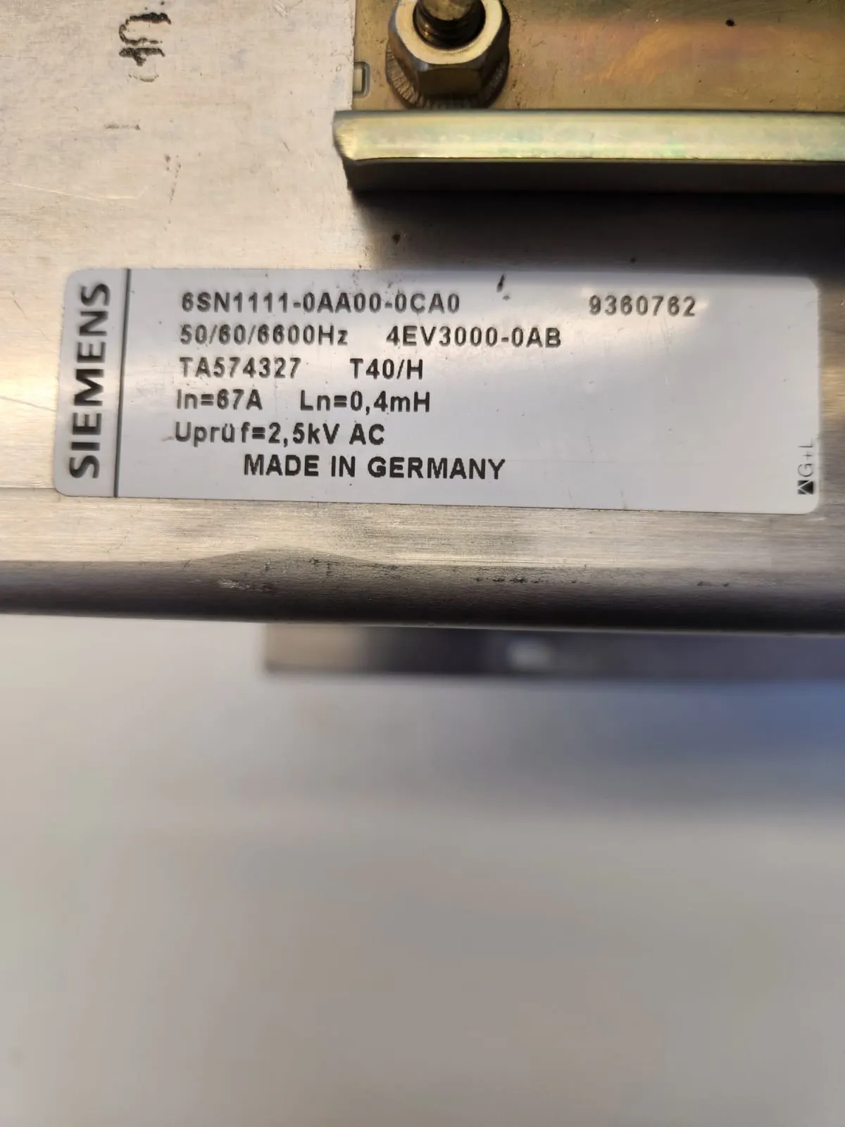 Zum Verkauf steht ein SIEMENS Simodrive 6SN1111-0AA00-0CA0 HF-Drossel.