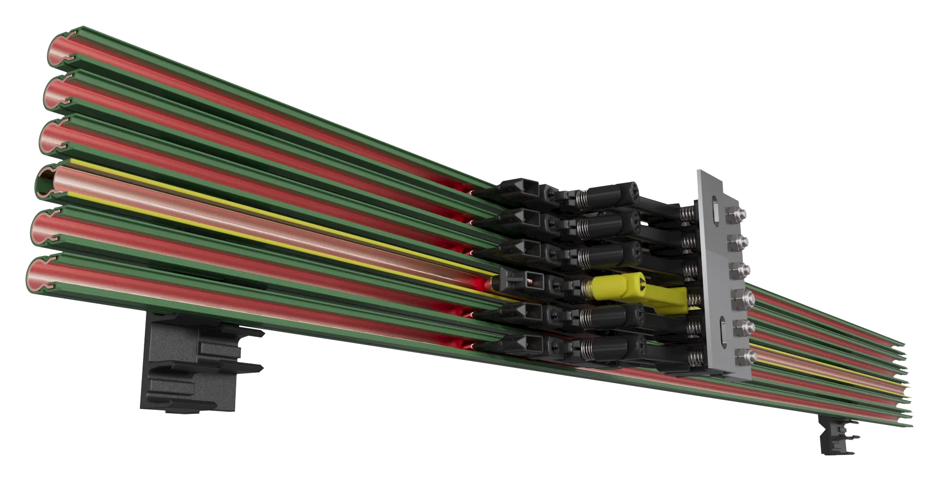 Ergänzt wird unser Portfolio durch das Schienensystem FABA100, das ein breites Einsatzspektrum bietet. Die FABA100 ist montagefreundlich, insbesondere bei Anlagenerweiterungen und Umbauten, und benötigt kein Spezialwerkzeug. Die FABA100 wird eingesetzt, wo kein Verpolschutz für den Schutzleiter erforderlich ist.