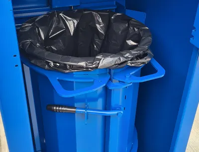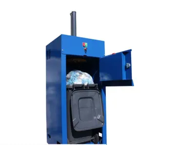 Müllverdichter / Müllpresse für 240 L Mülltonnen (Restbehälter) zur sicheren und schnellen Verdichtung von voluminösem Abfall. Reduziert den Behälterinhalt bis zu 75%, senkt Entsorgungskosten, verbessert Logistik und sorgt für ein sauberes Arbeitsumfeld.