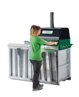Die V20X ist eine leistungsstarke Ballenpresse für größere Wertstoffmengen bei niedriger Deckenhöhe. Dank Doppelrammen-Pressstempel und kompakter Stellfläche eignet sie sich ideal für Supermärkte, mittelständische Unternehmen und Logistikzentren. Sie verdichtet Kartonage, Papier, Folie, Textilien und weitere Wertstoffe effizient zu schweren, gut stapel- und transportierbaren Ballen.