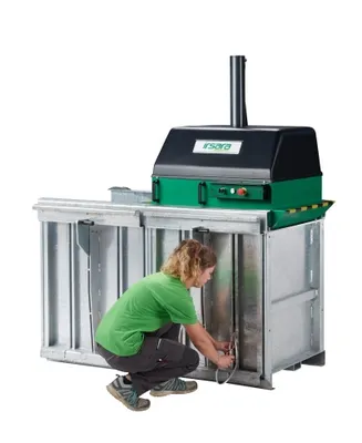 Kompakte Ballenpresse für Kartonage, Papier und Folie mit bis zu 5 t Presskraft. Ideal für kleine und mittelständische Betriebe mit begrenztem Platzangebot und geringem bis mittlerem Materialaufkommen. Erzeugt handliche Ballen (50–100 kg) für effiziente Lagerung und Recyclinglogistik. Presszyklus wahlweise automatisch oder manuell, mit integriertem Ballenauswerfer und „Easy Tie“-System für schnelles Abbinden.