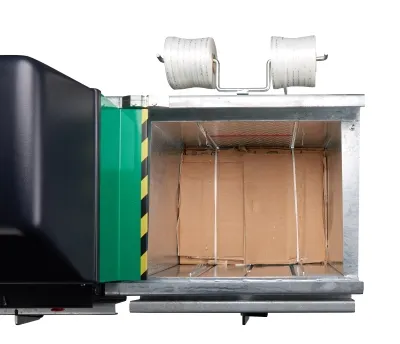 Hydraulischer Müllverdichter für 1100 L Müll- und Wertstoffbehälter (auch 770 L und 660 L) zur schnellen Verdichtung voluminöser Abfälle. Ideal für Restmüll, Papier/Pappe, Grüne Tonne sowie Wertstofffraktionen. Reduziert das Abfallvolumen deutlich und senkt dadurch Abfuhrfrequenz und Entsorgungskosten.