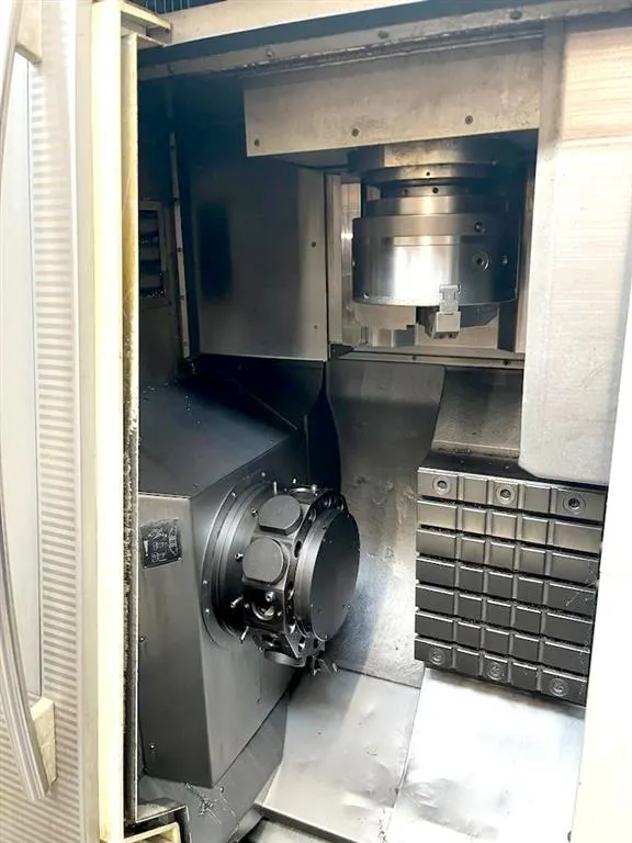 Zusätzliche Informationen: CNC Vertikaldrehmaschine rechte Ausführung, Angetriebene Werkzeuge, C-Achse, Hochdruckpumpe 20 bar, 500l, Filter Spritzpistole, 3-Backenfutter, EWAB Beladestation rechts, Späneförderer Zählerstände: ca. 23.500 Einschaltstunden, ca. 8.000 Spindelstunden