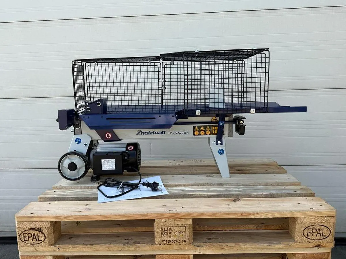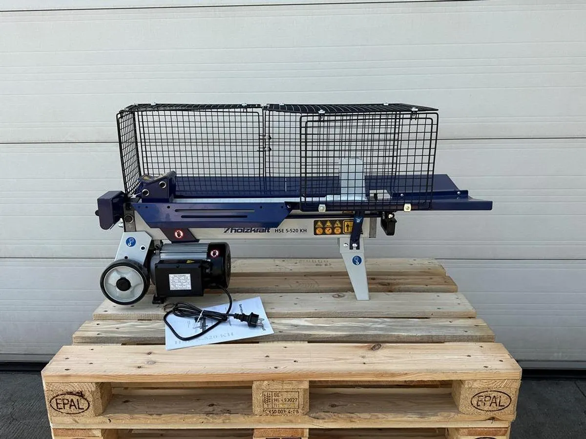 Holzspalter Holzkraft Typ HSE 5-520 KH zum komfortablen und sicheren Spalten von Kurzholz für den privaten oder semiprofessionellen Einsatz. Die kompakte Bauweise und die einfache Bedienung ermöglichen effizientes Arbeiten auch auf engem Raum. Ideal für die Brennholzvorbereitung.