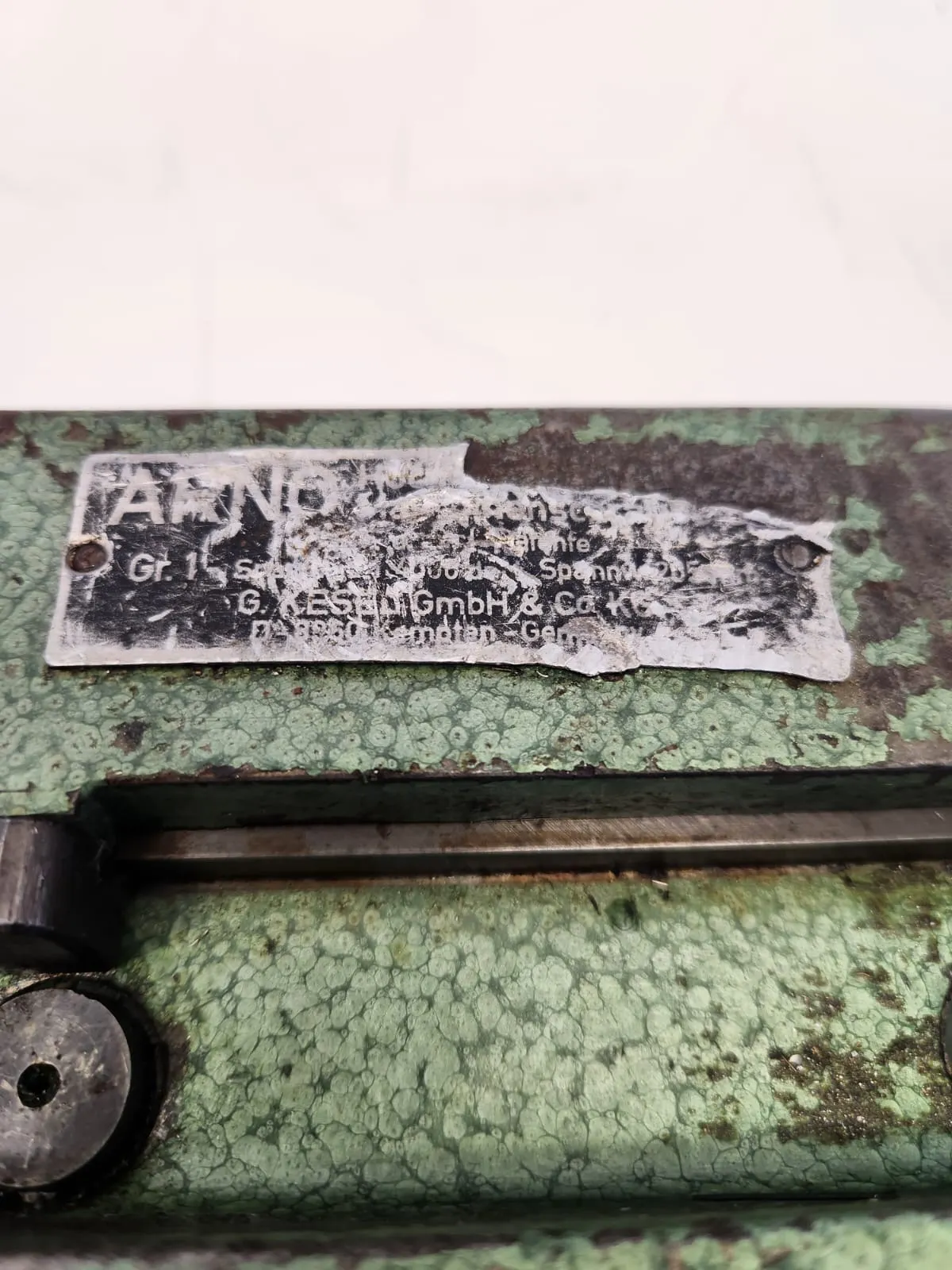 Der Maschinenschraubstock der Marke ARNO hat eine Breite von 16 cm und eine Länge von 62 cm