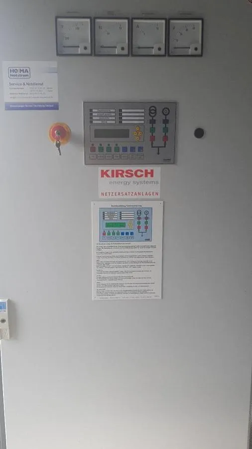 Notstromaggregat, Generator oder Netzersatzanlage Kirsch Typ D 200 – 4 IWE nach DIN ISO 8528 zur Erzeugung von Strom durch Verbrennung von Diesel in einem geschlossenen Schallschutz Container.