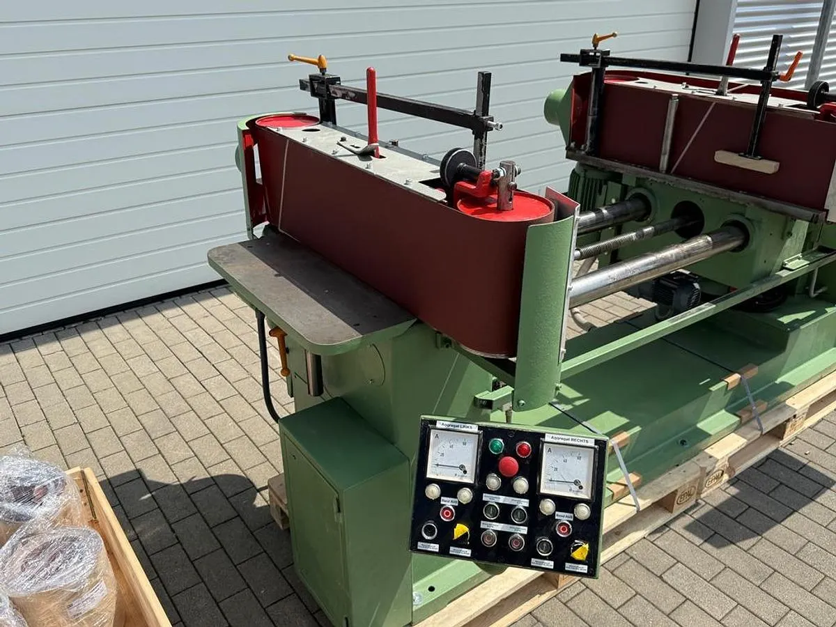 Kastenschleifmaschine KED Ehemann Typ S10 oder auch bekannt als Schubkastenschleifmaschinen / Schubkasteneinpassmaschine, zum Schleifen von ganzen (z.B.) gezinkte Massivholzkästen oder anderen würfelförmigen Werkstücken. Nutzbar auch als Kantenschleifmaschine und inkl. einem Posten Schleifbänder.