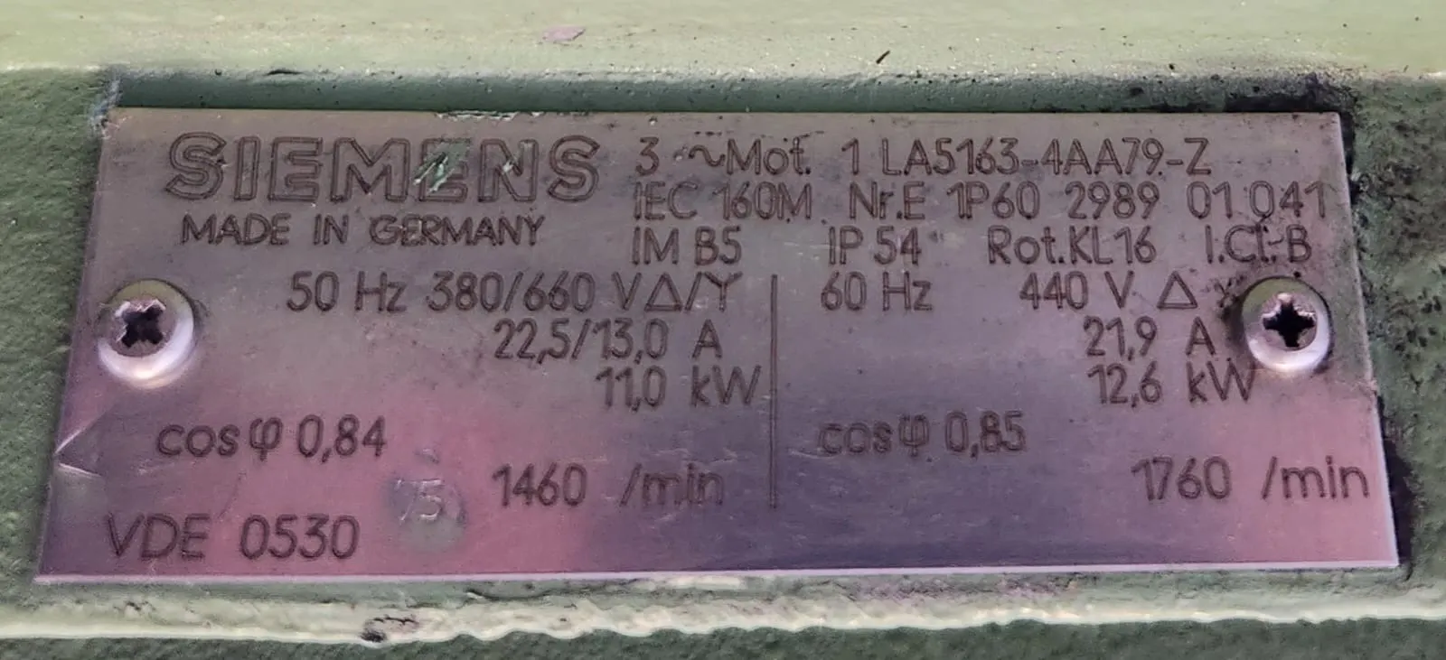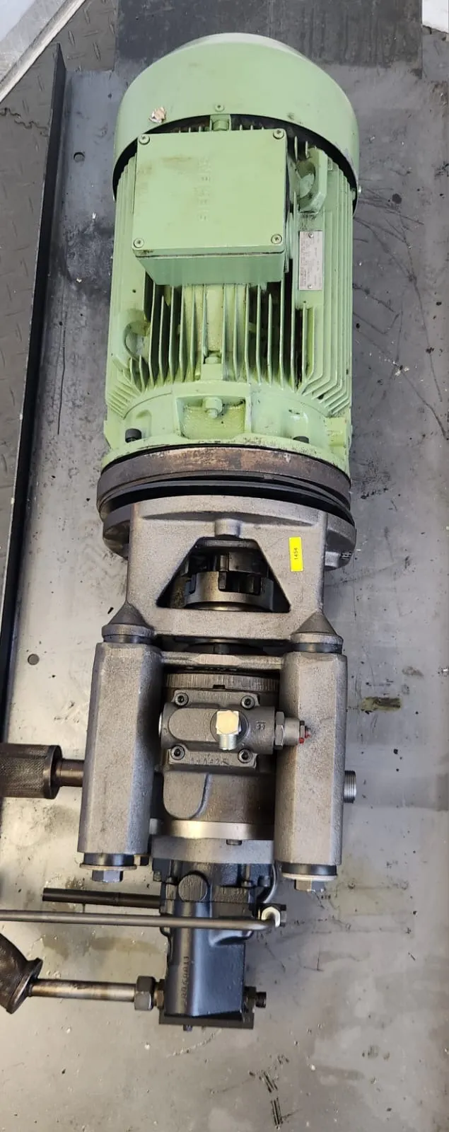 Zum Verkauf steht ein SIEMENS-Elektromotor mit Hydraulikpumpe. Den Typenschild des Motors sind auf den Bildern ersichtlich.