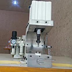 This powerful pneumatic machine is used for punching eyelets, rivets, snaps, hooks & name plates onto garments and accessories.