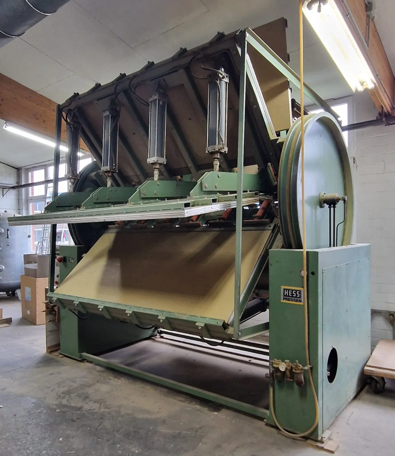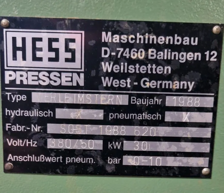 Anschluß 30 KW. Vier Pressflächen. Hydraulisch, pneumatisch.