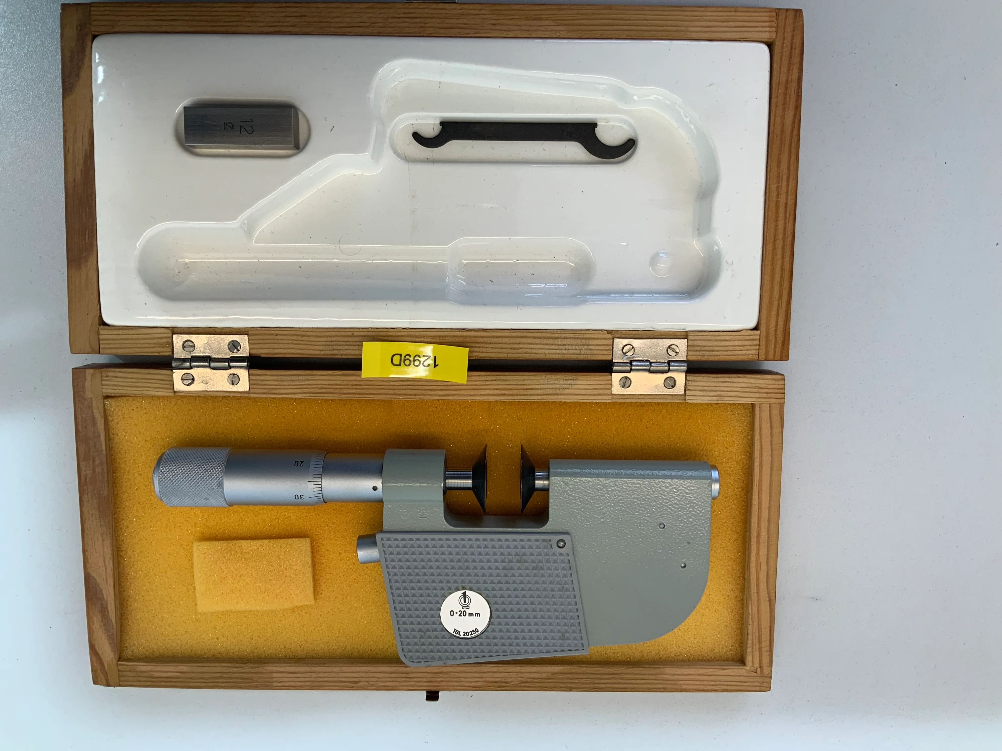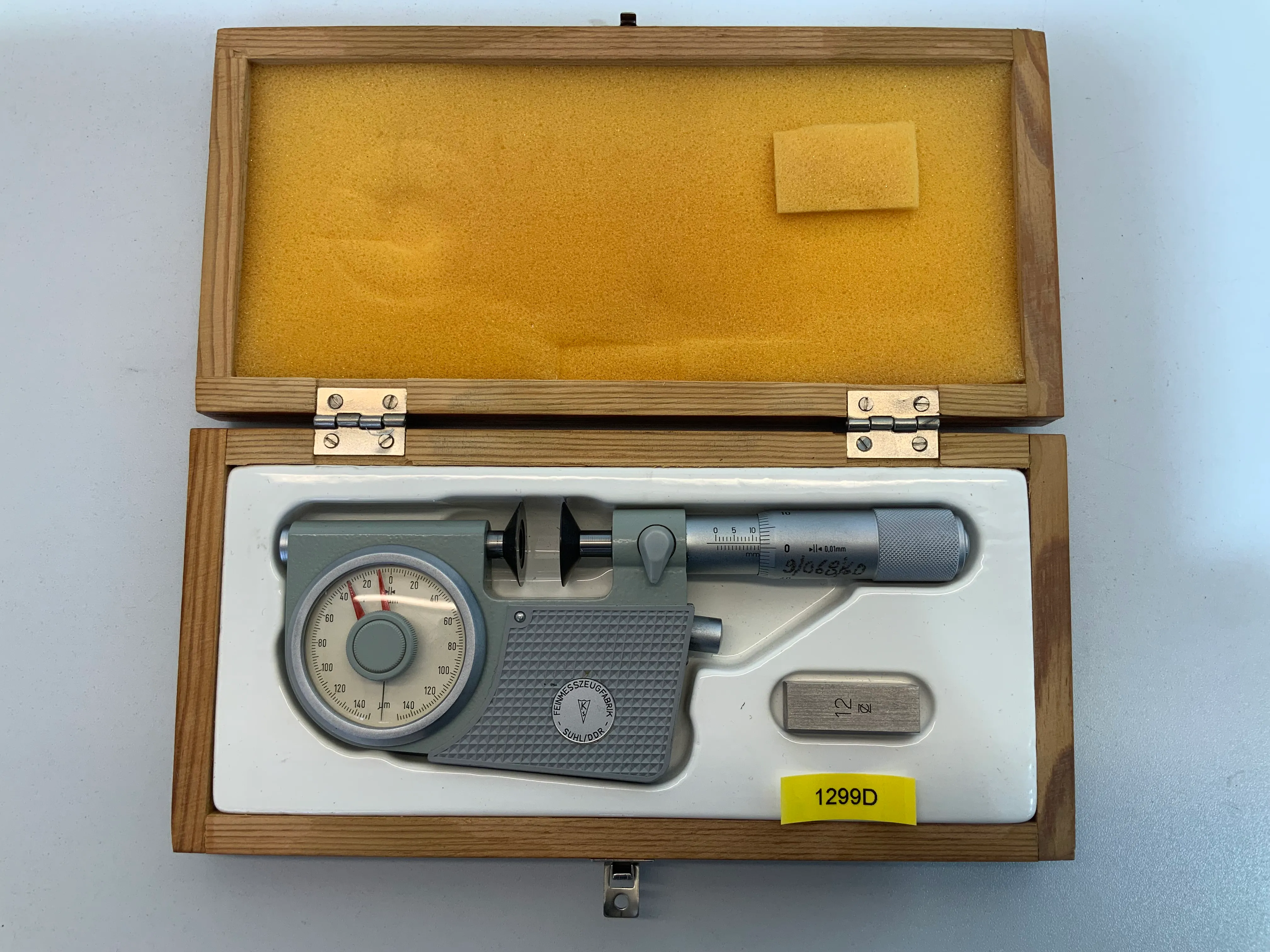 Zum Verkauf steht ein Feinmesszeugfabrik Bügelmessschraube mit Messtellern mit einem Messbereich von 0-20mm.